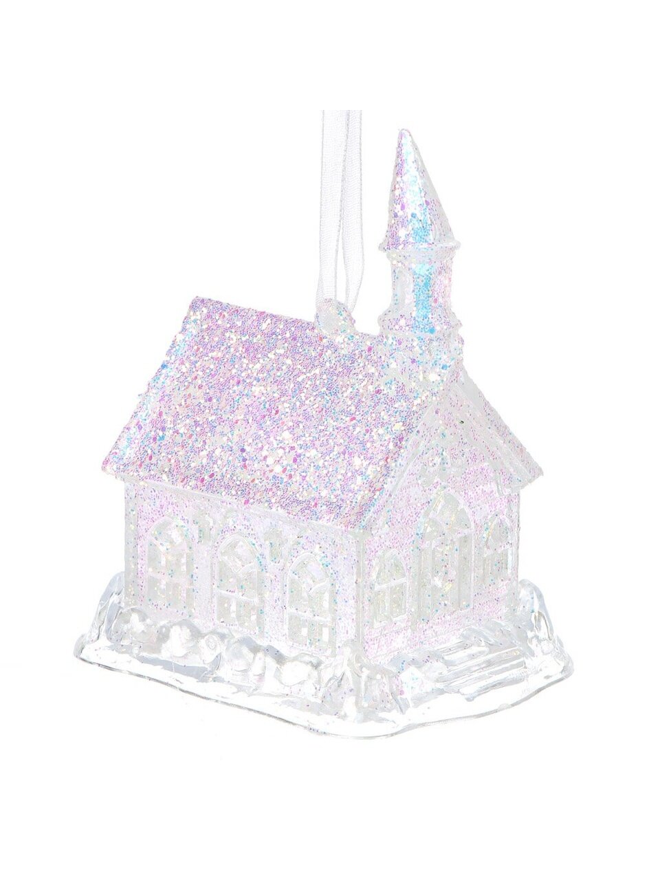 Елочное украшение Домик перламутрового цвета 7×6×10 см — стильный акцент для новогодней елки: легкий, небьющийся, подходит для улицы и дома.
