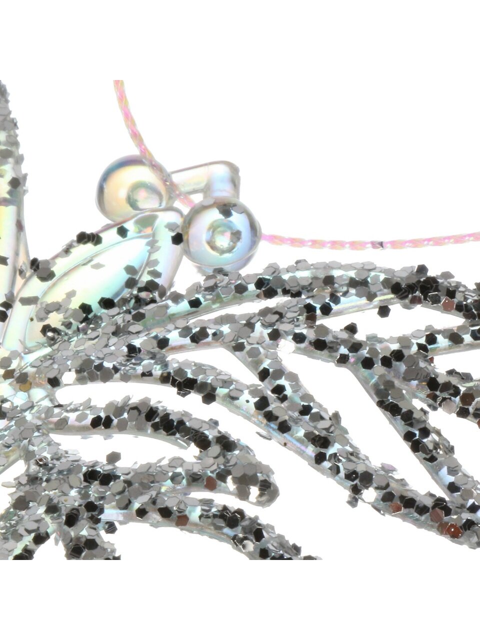 Размер — 10×12 см, цвет — прозрачный с серебряными блестками. Подходит для елок среднего и большого размера, крепится на подвеске.