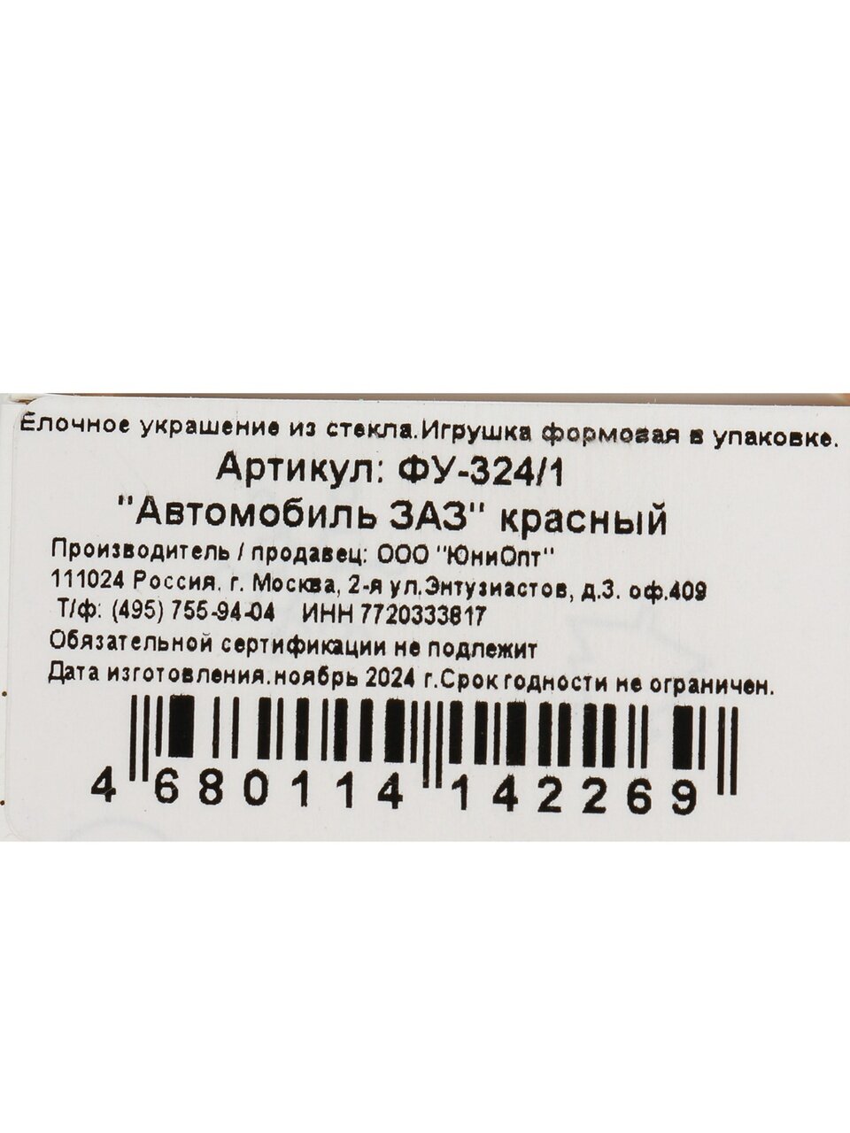 Вы можете приобрести «Елочное украшение Автомобиль ЗАЗ, красное, 6 см, стекло, ФУ-324/1» и другие товары в нашем интернет-магазине в Брянске по низким ценам и с бесплатным самовывозом.