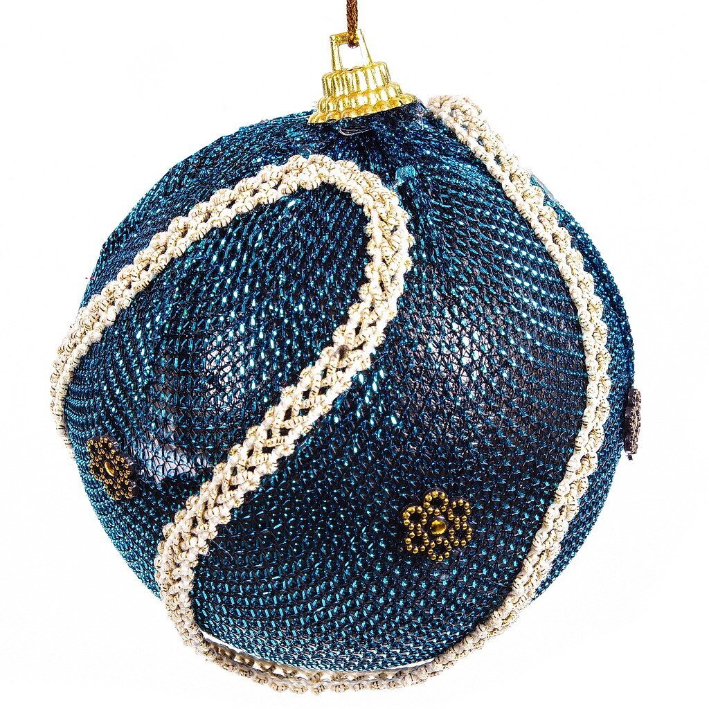 Диаметр шара — 8 см, это средний размер, который гармонично смотрится как на компактных, так и на полноразмерных ёлках. Подходит для украшения как дома, так и улицы.