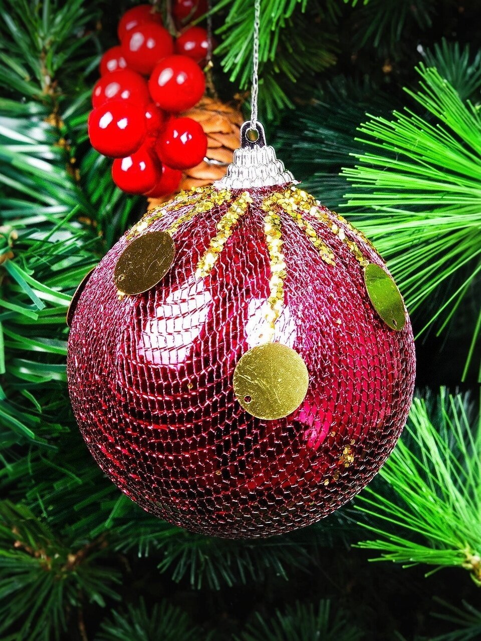 Елочный шар красный 8 см SYPMQB-1021393 — стильное украшение для новогодней ёлки, не бьётся, подходит для улицы и дома. Создайте атмосферу праздника без лишних хлопот!