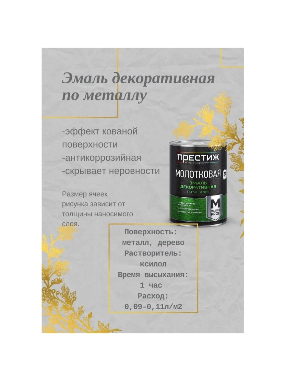 - Состав: Модифицированная алкидная смола, органические и металлизированные пигменты, функциональные добавки, растворитель