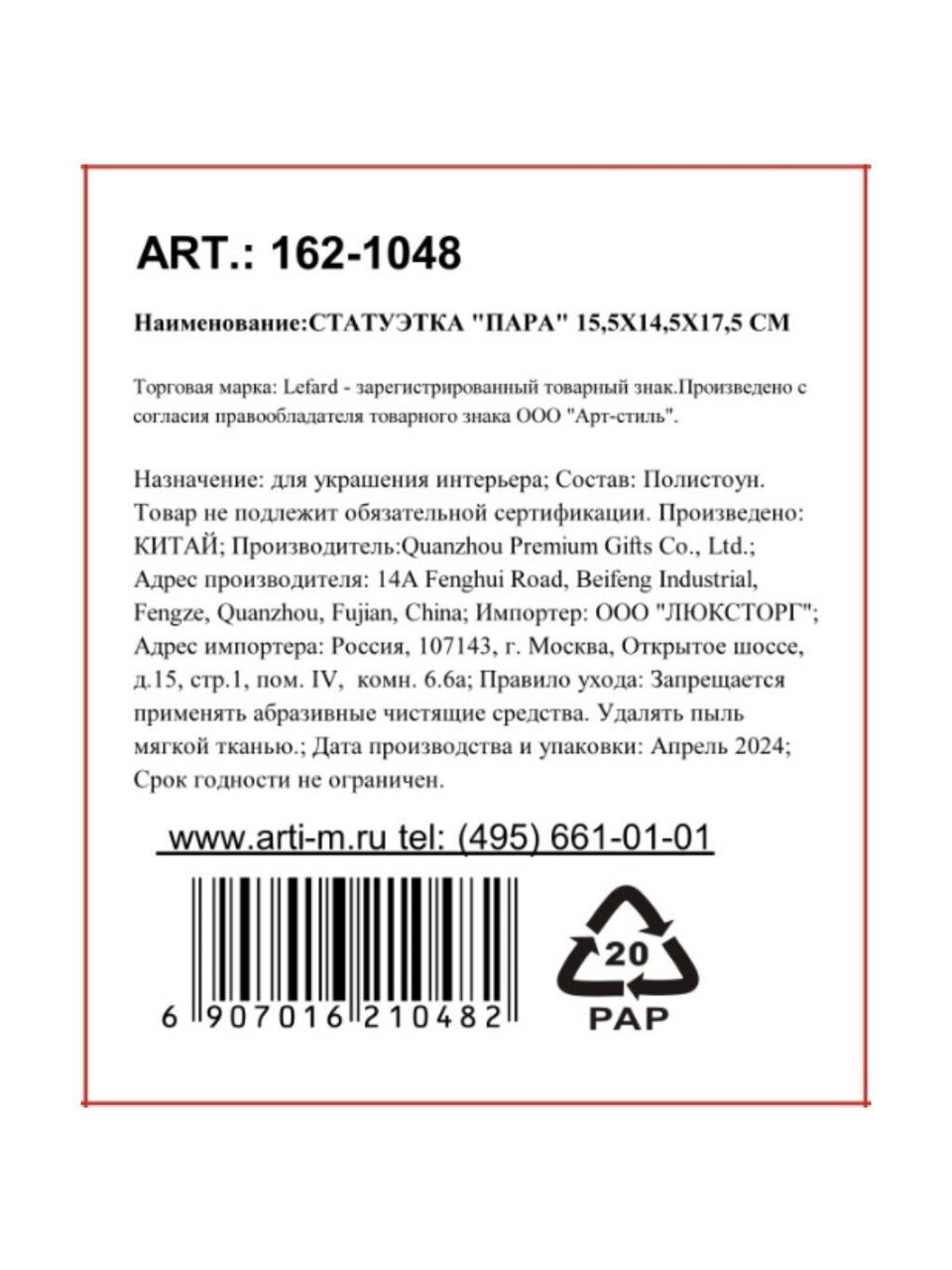 Вы можете приобрести «Статуэтка полистоун, Пара, 15.5х14.5х17.5 см, 162-1048» и другие товары в нашем интернет-магазине в Иваново по низким ценам и с бесплатным самовывозом.