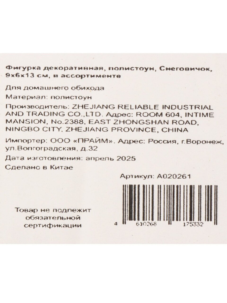 Вы можете приобрести «Фигурка декоративная полистоун, Снеговичок, 9х6х13 см, в ассортименте, A020261» и другие товары в нашем интернет-магазине в Старом Осколе по низким ценам и с бесплатным самовывозом.