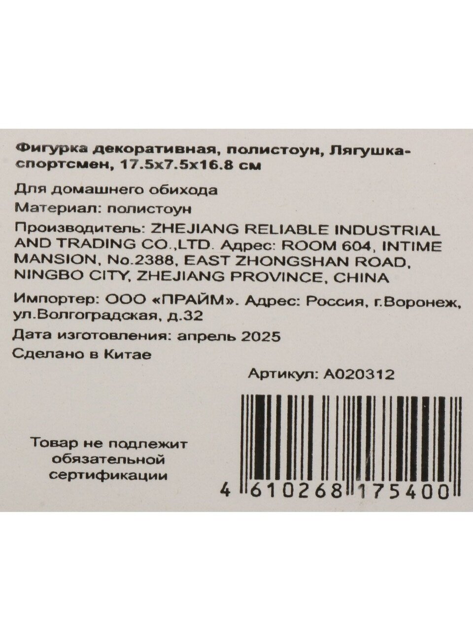 Фигурка декоративная «Лягушка-спортсмен» 17.5х7.5х16.8 см – стильный акцент для дома, дачи или оригинального подарка. Прочный полистоун, трендовый дизайн, выгодная цена.