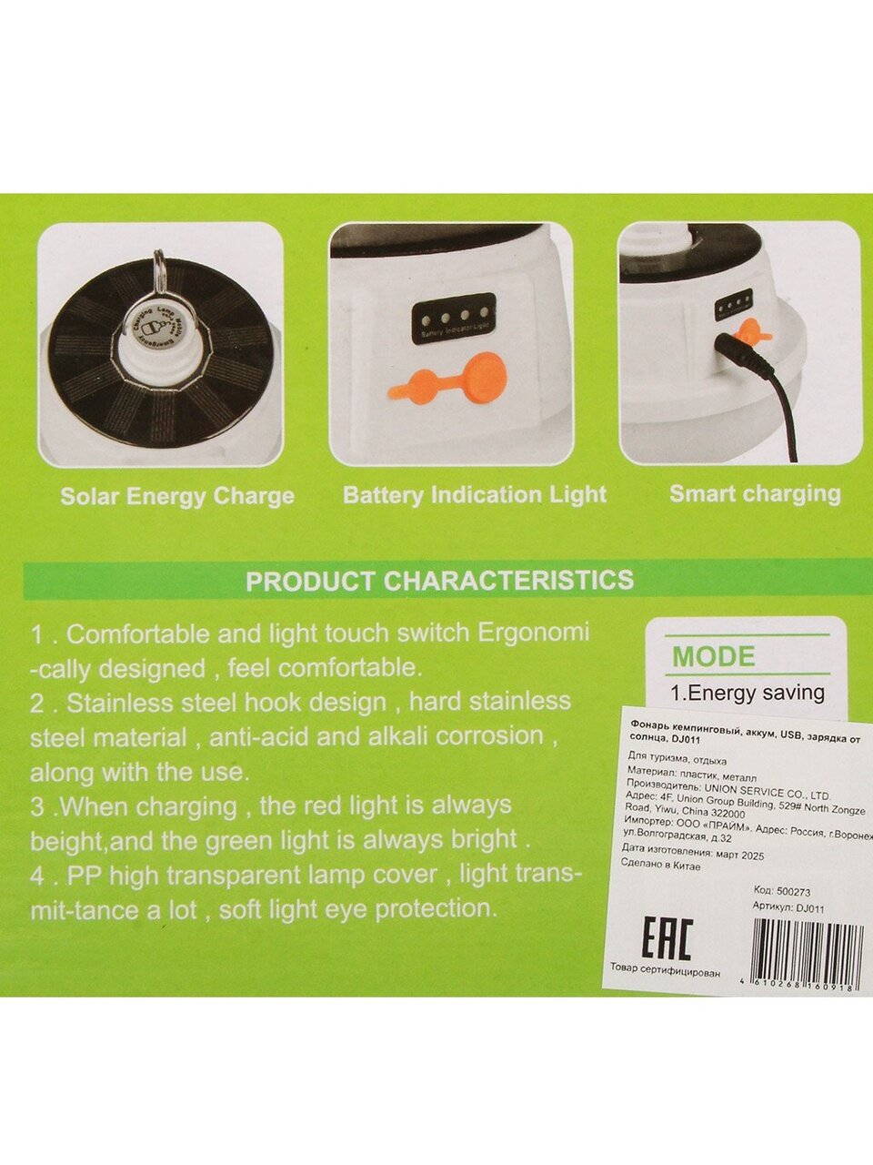 Фонарь кемпинговый DJ011 — надежное решение для освещения на природе, даче, в походе или на рыбалке. Компактная конструкция и современный дизайн сочетаются с функциональностью, делая прибор незаменимым помощником для активного отдыха и бытовых нужд. Благодаря встроенному аккумулятору и возможности зарядки от USB, устройство легко поддерживать в рабочем состоянии без лишних хлопот. Особое внимание заслуживает функция зарядки от солнечной энергии, что позволяет использовать фонарь даже вдали от электросети и экономить электроэнергию.