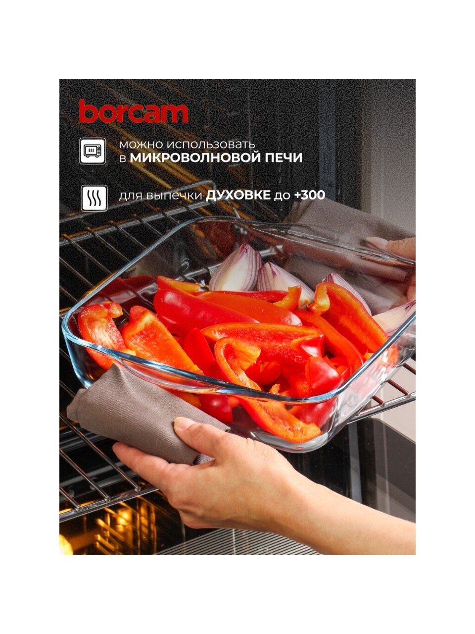 Как использовать форму Borcam? Просто положите ингредиенты, закройте крышкой для сохранения сочности, и ставьте в духовку или микроволновку. Прямоугольная форма удобна для запекания целой курицы, рыбы, слоёных запеканок. Можно ли мыть в посудомойке? Да, стекло и крышка выдерживают автоматическую мойку. Если вы ищете, что лучше для запекания и хранения, — Borcam сочетает две функции в одной посуде.