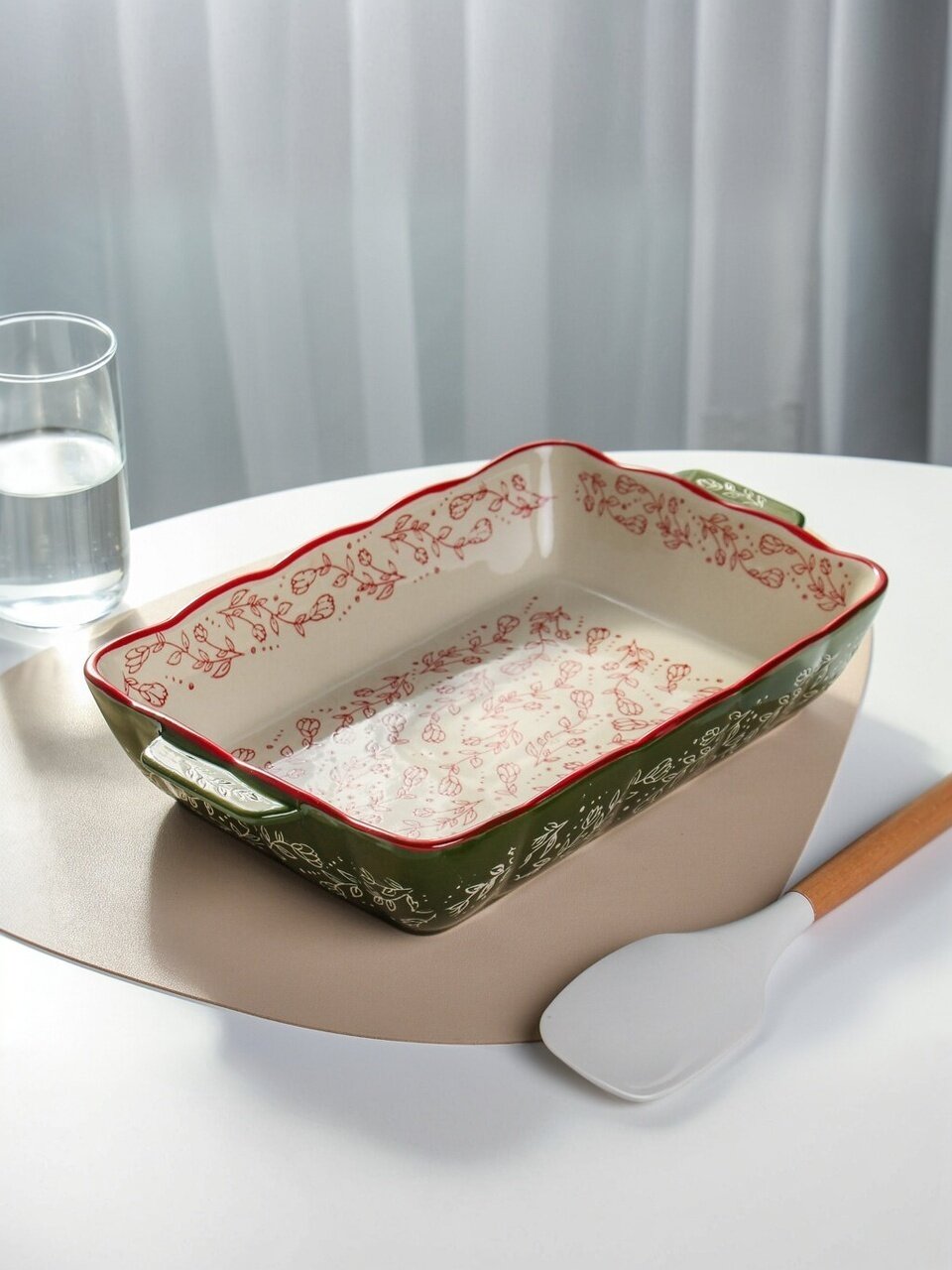 Форма для запекания из керамики 20.8×33 см «Зеленые веточки» — стильное решение для вкусных домашних блюд: не трескается, удерживает тепло, легко моется.