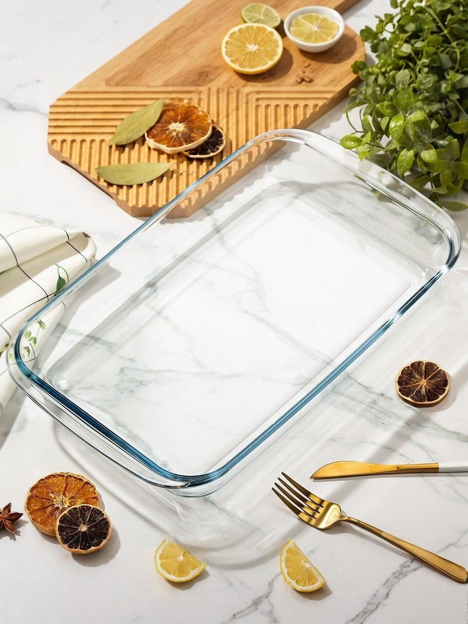 Форма для запекания из жаропрочного стекла Daniks — это оптимальный выбор, если вы ищете посуду для духовки, которая подойдёт и для СВЧ. Благодаря большому объёму 3 литра и прямоугольной форме (23.8х39.5х5 см), она отлично подходит для запекания курицы, рыбы, овощей, приготовления пирогов или лазаньи. Стекло не впитывает запахи, не окрашивается и не выделяет вредных веществ при нагреве, что важно для безопасности и здоровья семьи.