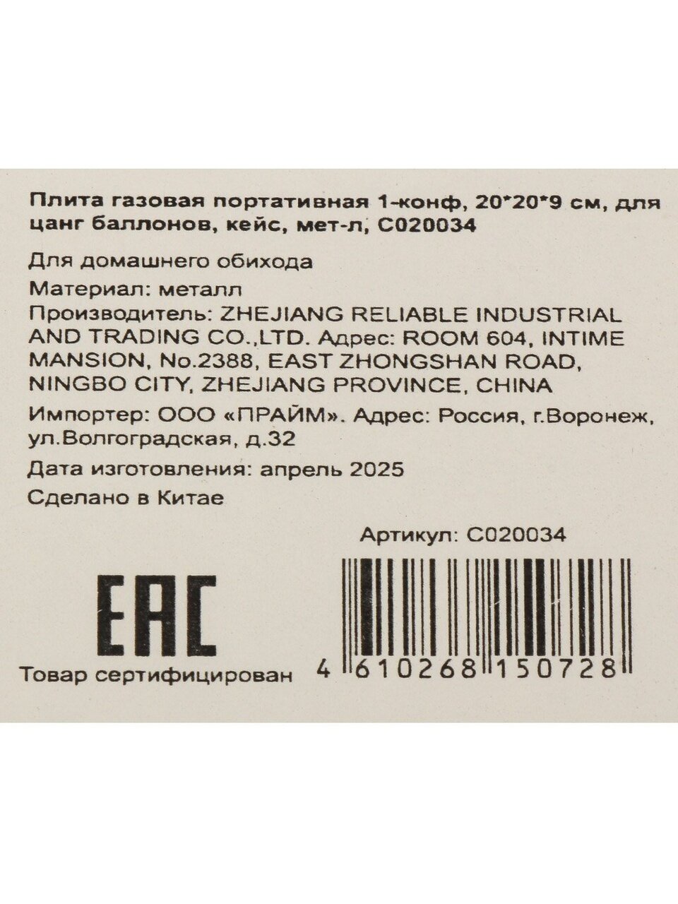 - Артикул производителяC020034