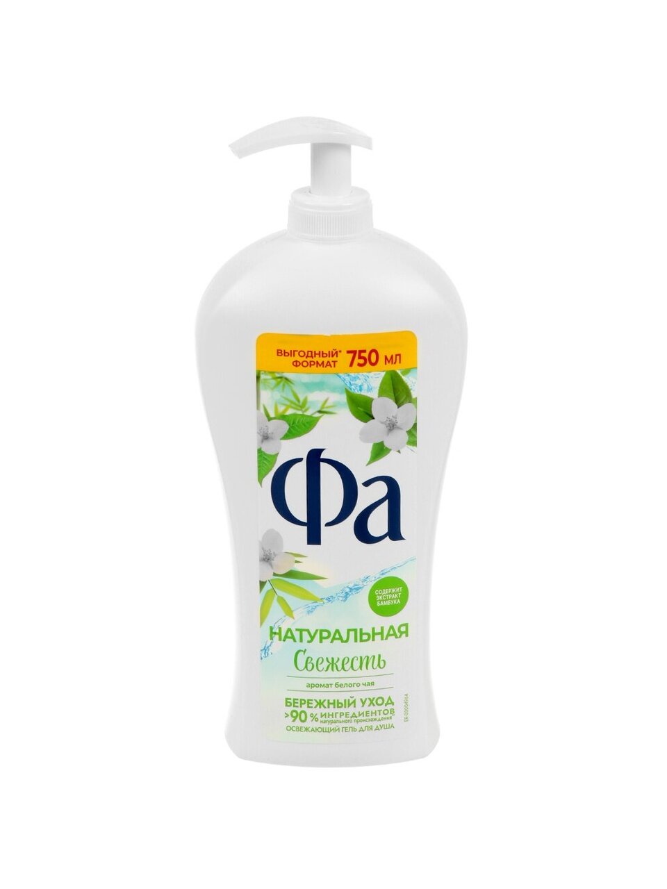 Гель для душа Фа Природная Свежесть Белый Чай и Бамбук 750 мл — свежесть и удовольствие от ежедневного ухода за телом. Формула с ароматом белого чая и бамбука помогает ощутить легкость и чистоту. Большой объем подходит для всей семьи и длительного использования.