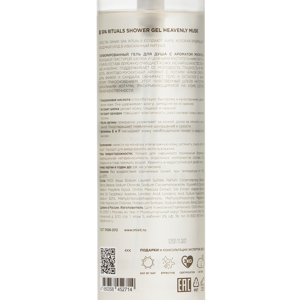 - Парфюмированный гель с изысканным мускусом — ощущение роскоши и ухода как в спа-салоне.