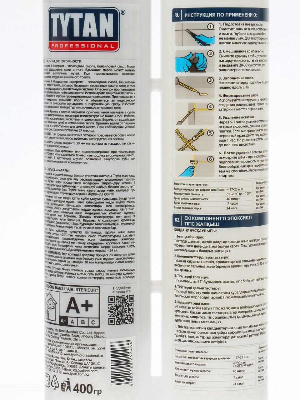 Затирка для швов эпоксидная, Tytan, Professional, 52466, 400 г, двухкомпонентная, серый хаки