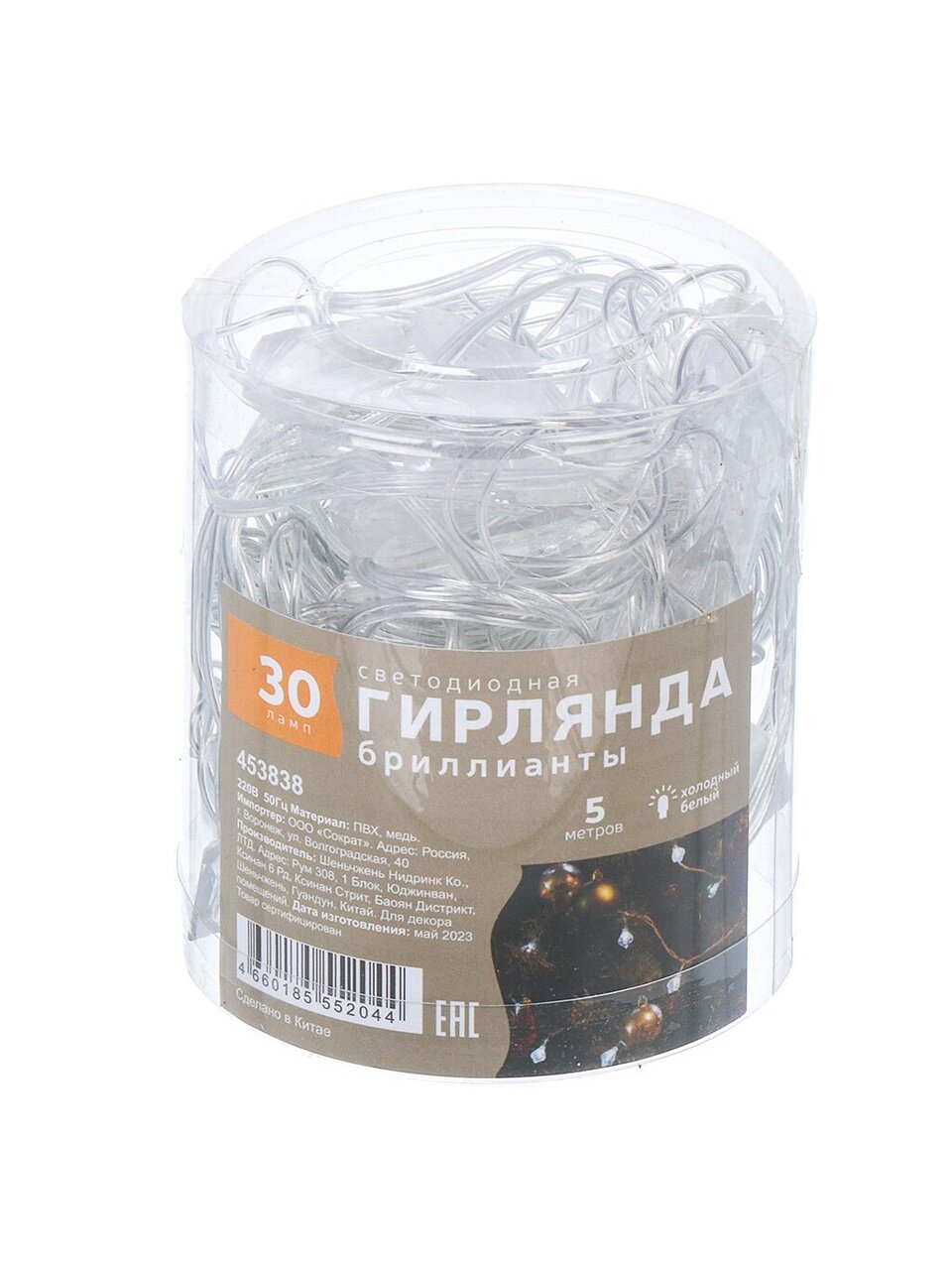 Вы можете приобрести «Гирлянда 30 ламп, 5 м, 1 режим, Бриллианты, холодный белый свет, прозрачная, в помещении, сетевая, LED, Y4-7534» и другие товары в нашем интернет-магазине в Старом Осколе по низким ценам и с бесплатным самовывозом.
