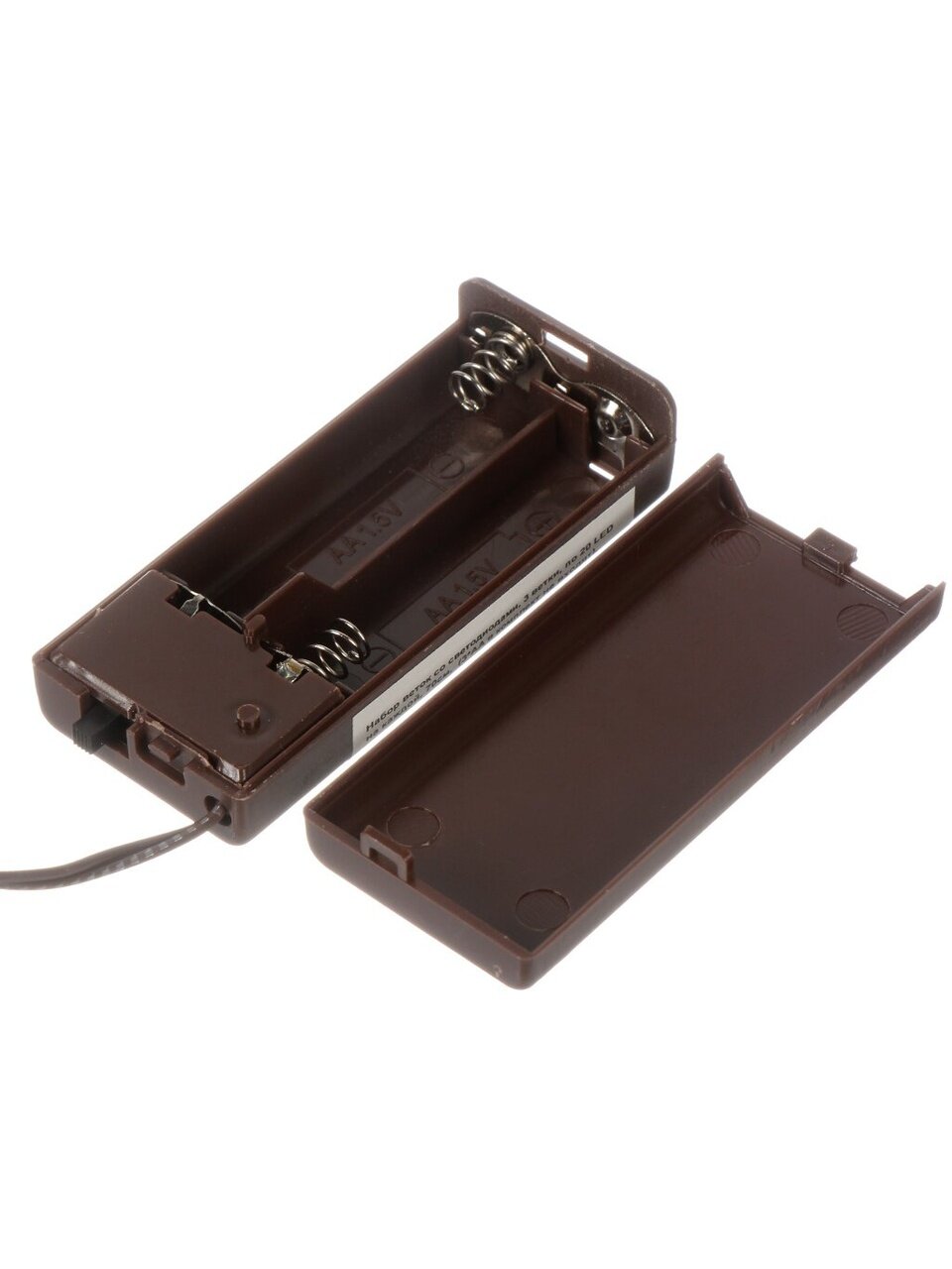 Данная модель работает на батарейках, что позволяет размещать её в любом месте без необходимости подключения к электросети. В комплекте — провод и отсек для батареек.