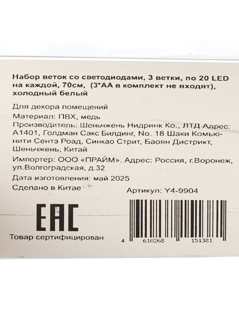 Вы можете приобрести «Набор веток со светодиодами холодный белый свет, на батарейках, 3 ветки, по 20 LED на каждой, 70 см, Y4-9904» и другие товары в нашем интернет-магазине в Таганроге по низким ценам и с бесплатным самовывозом.