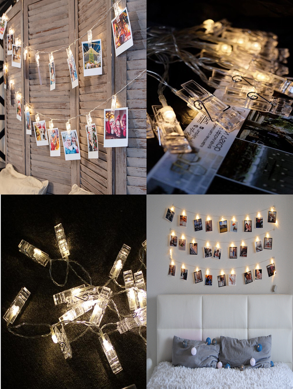 - На гирлянде "Прищепки" можно закреплять семейные фотографии, сладости или небольшие сувениры.