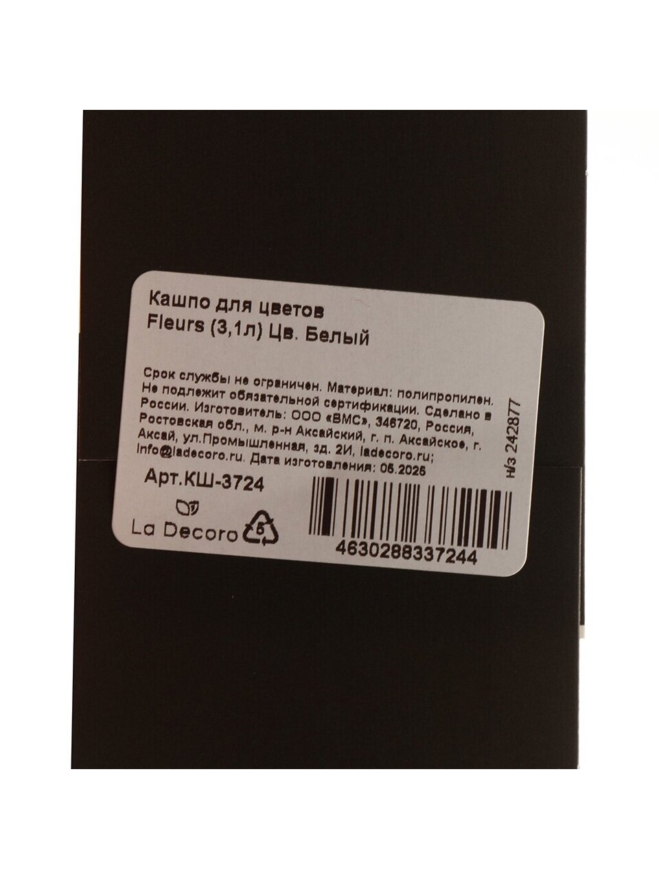 Кашпо La Decoro, Fleurs — стильное решение для оформления интерьера и создания уютной атмосферы дома или на даче. Современный дизайн в белом цвете гармонично впишется в любой стиль: от классики до минимализма, подчеркнет изящество комнатных растений, добавит свежести и аккуратности в любое пространство. Кашпо выполнено из прочного пластика, что обеспечивает легкость, долговечность и простоту ухода.