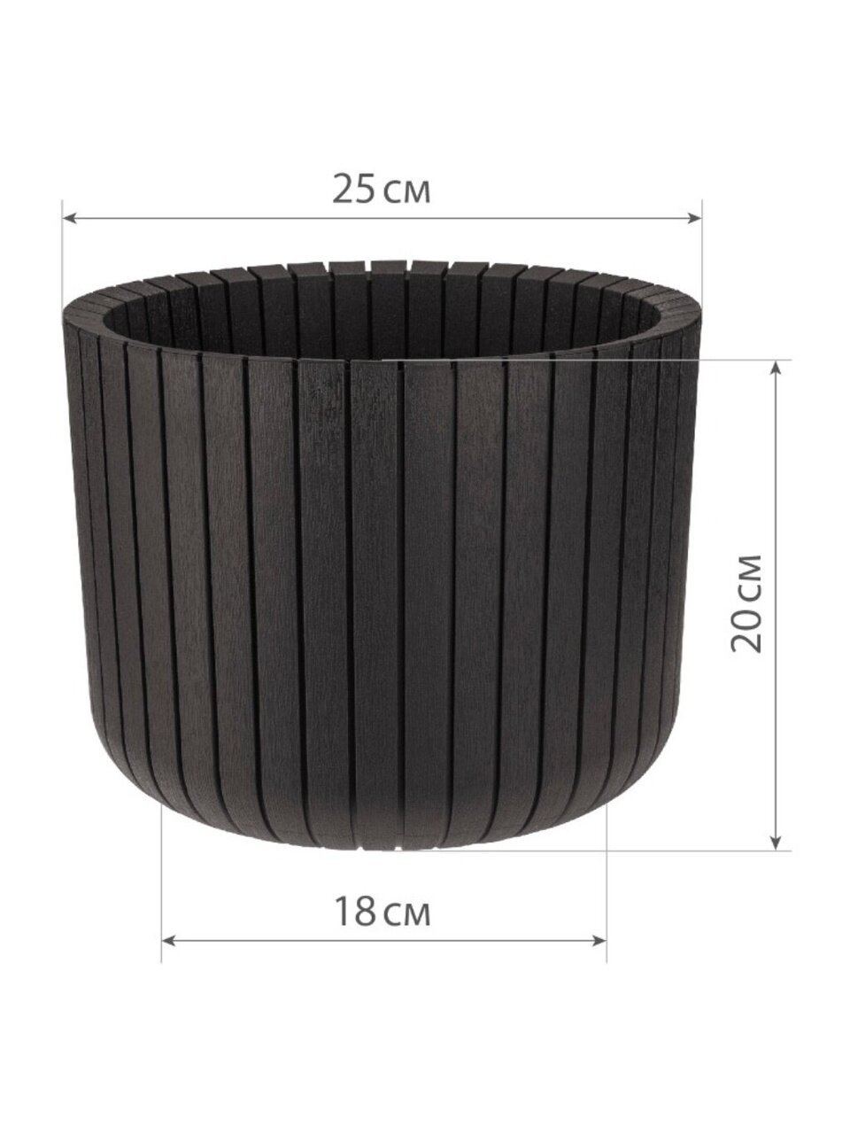 Изделие имеет цилиндрическую форму. Поверхность с имитацией дощечек и фактуры древесины, приятна на ощупь, отличается долговечностью и простотой в уходе. Кашпо Шато- привлекательная деталь, которая поможет воплотить Вашу интерьерную идею, создать неповторимую атмосферу в доме. Такое дополнение порадует глаз и подарит гармонию. Кашпо выглядит аккуратным компактным, не смотря на свою вместительность. Эффект объемных дощечек создается за счет декоративного ободка, при этом объем кашпо не уменьшается. Ободок также выполняет функцию ребра жесткости, что сохраняет прочность конструкции.