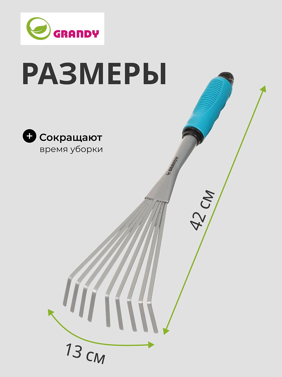 Вы можете приобрести «Грабли веерные, 9 зуб, сталь, 13 см, Grandy, Connect, черенок пластиковый» и другие товары в нашем интернет-магазине в Ельце по низким ценам и с бесплатным самовывозом.