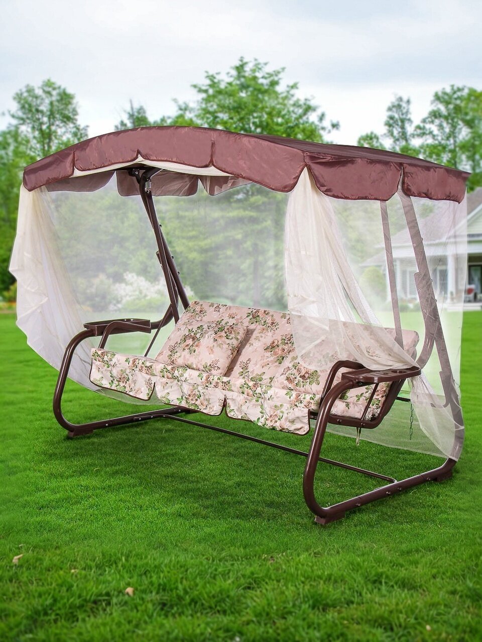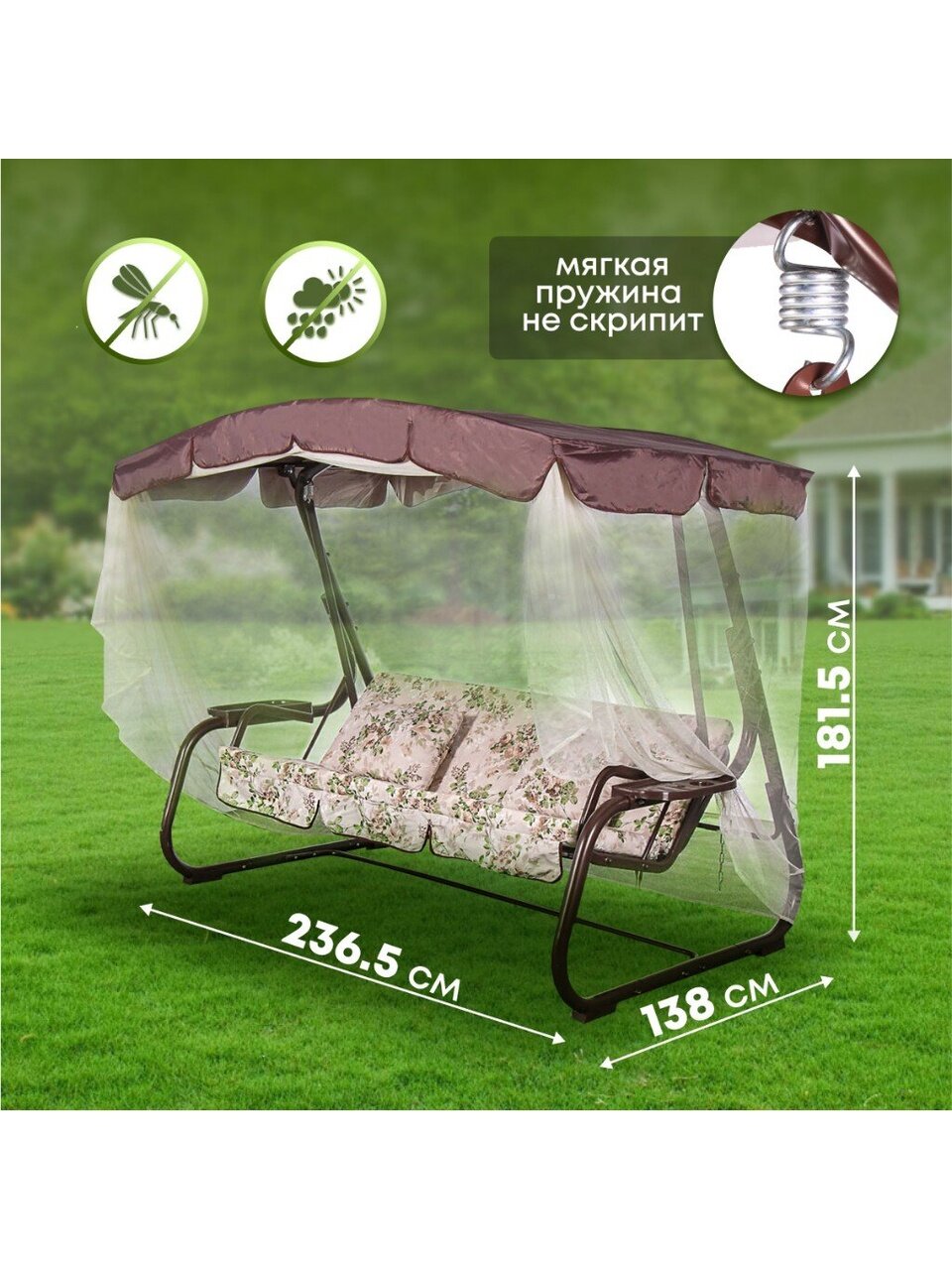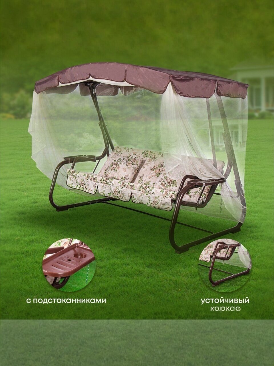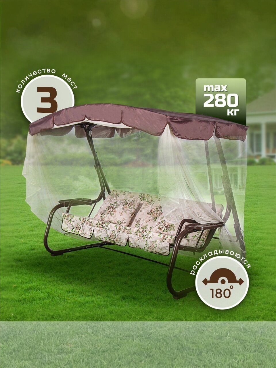Вы можете приобрести «Качели садовые 3-местные, 236.5х138х181.5 см, 280 кг, Куба, раскладываются в кровать, с москитной сеткой, с 1281, сталь» и другие товары в нашем интернет-магазине в Курске по низким ценам и с бесплатным самовывозом.