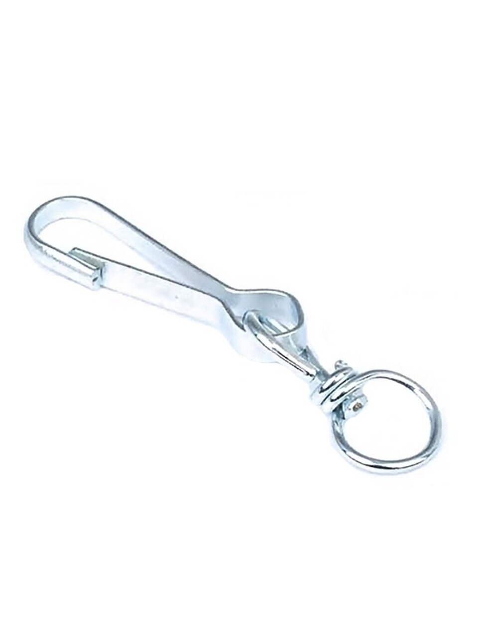 Карабин с вертлюгом применяется для быстрого, простого, надежного и разъемного соединения между собой цепей, тросов, веревок, ремней и т.п., а также для крепления их к различным конструкциям и основаниям. Имеет грушевидную форму круглого сечения с пружинной защелкой и прикрепленное к нему кольцо, свободно вращающееся и предотвращающее перекручивание в процессе работы. Используется в быту, строительстве, судостроении, при погрузочно-разгрузочных работах.