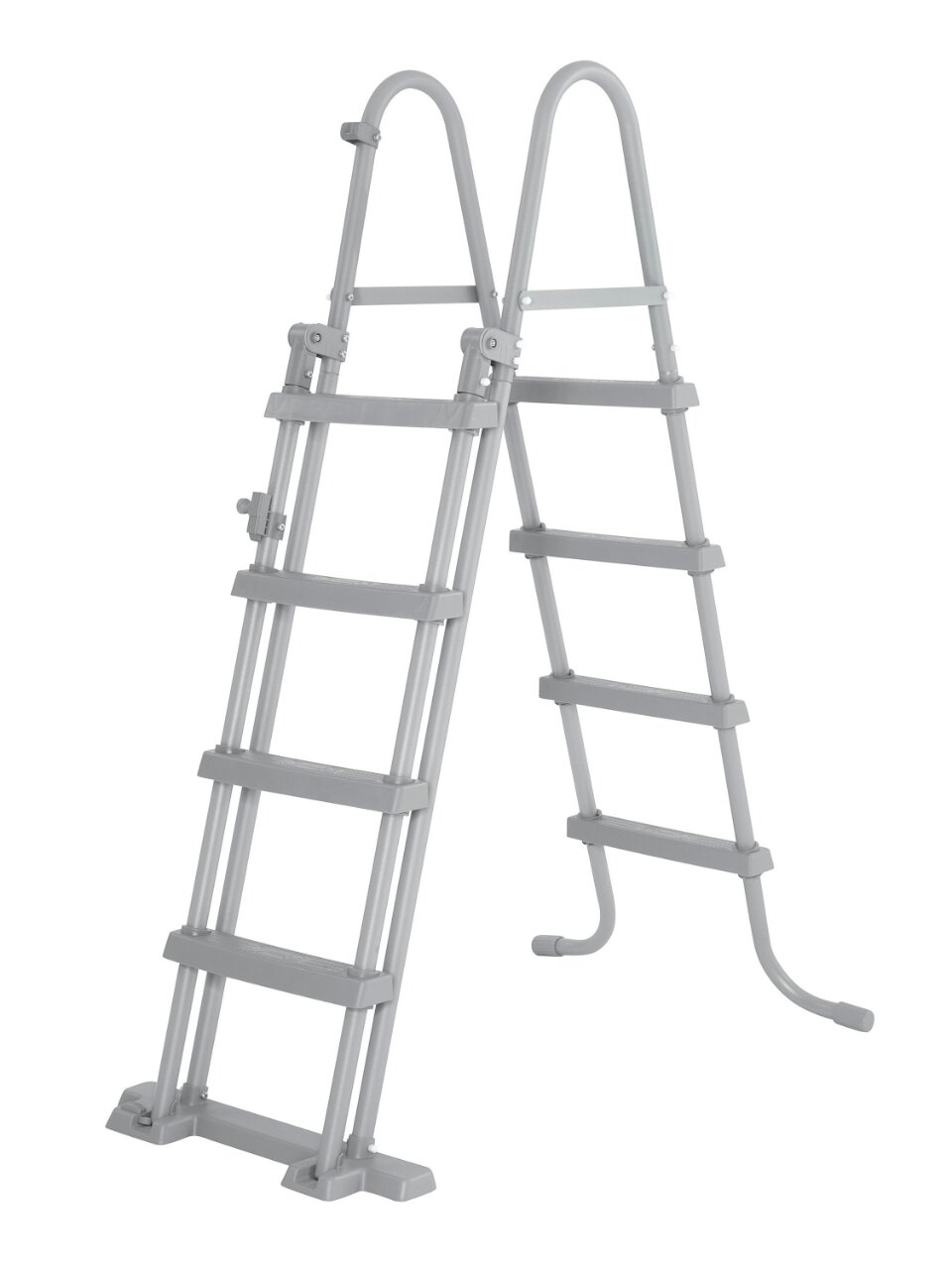 Да, бассейн безопасен: высота бортика 122 см, прочный каркас, в комплекте есть лестница и тент для защиты. Большой объем позволяет использовать его для семейного отдыха и игр.