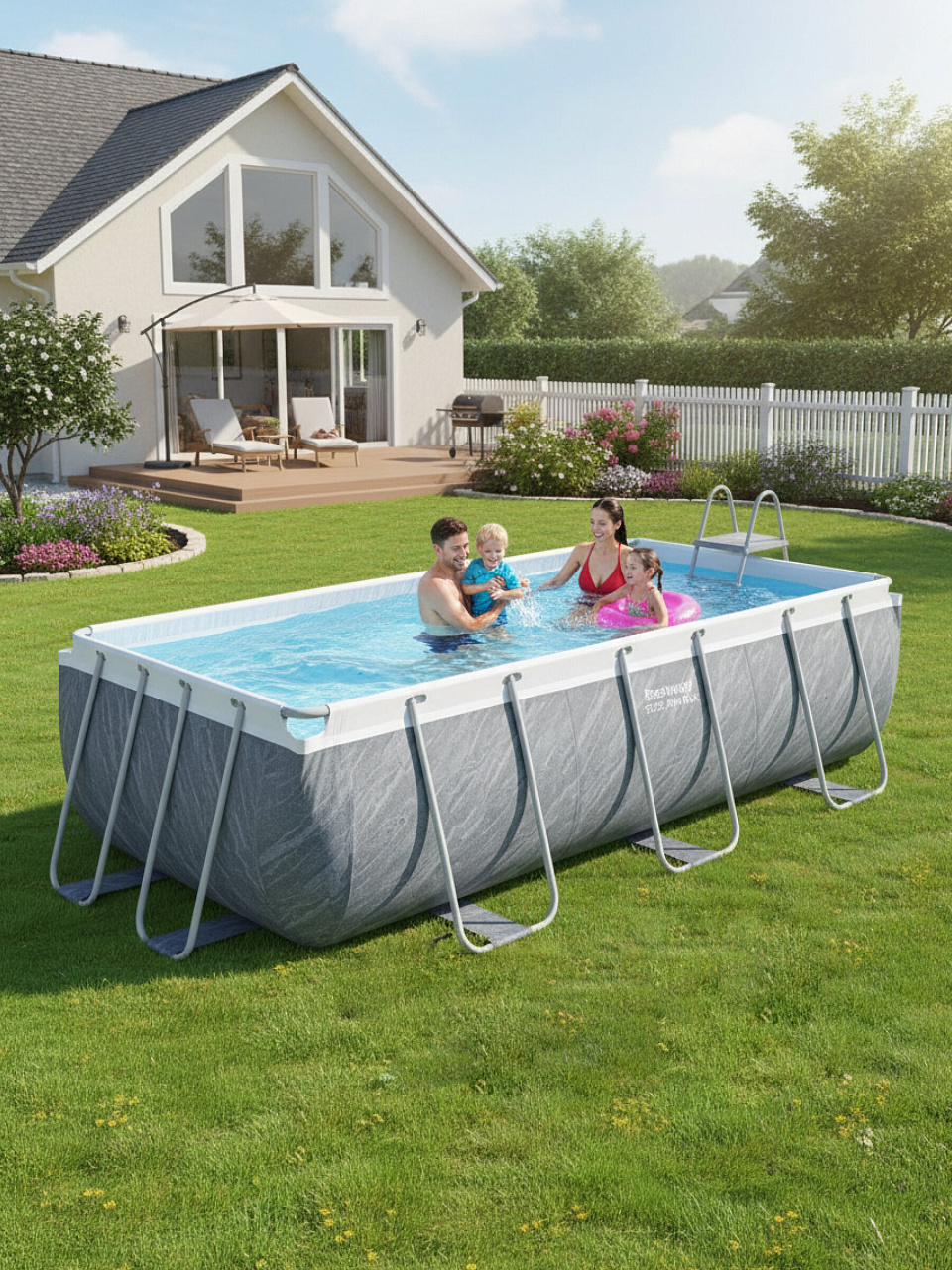 - Компактность: несмотря на внушительные размеры, бассейн легко вписывается в любой участок благодаря своей прямоугольной форме.