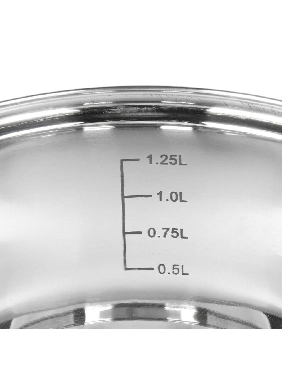 Объём — 1.7 л, диаметр — 16.5 см, высота без крышки — 9.2 см, вес — 0.71 кг. Подходит для приготовления супов, каш, макарон и пюре.
