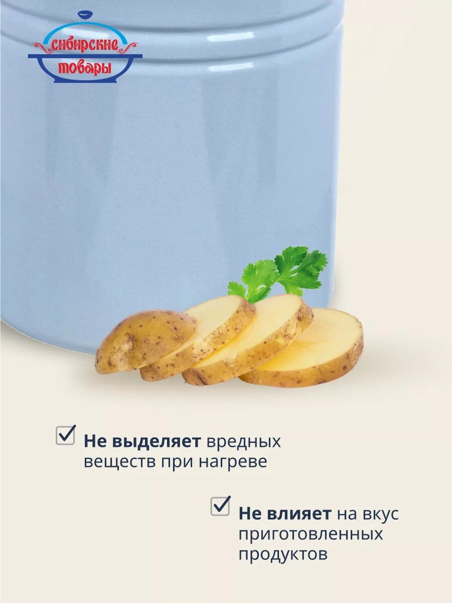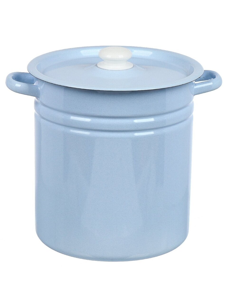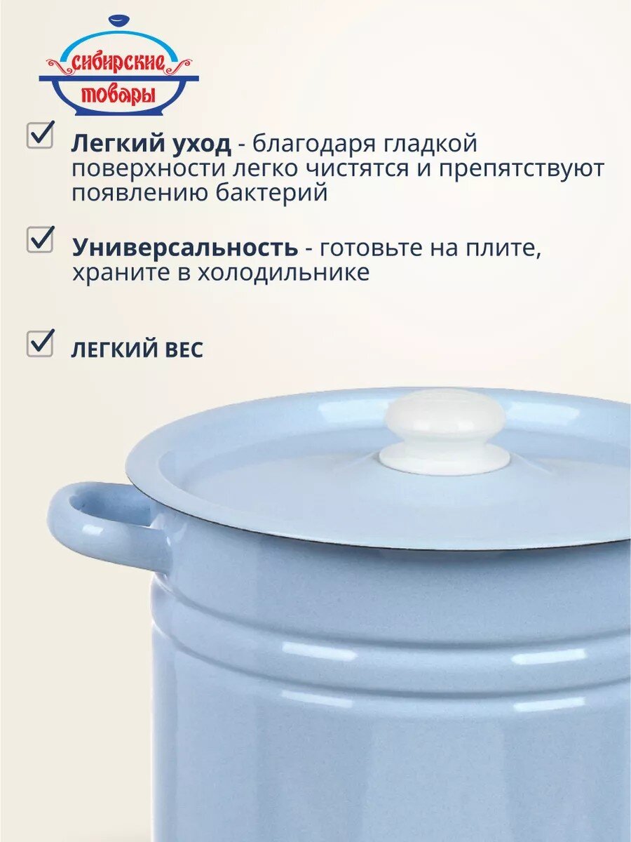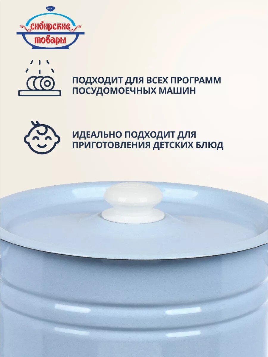 Кастрюля эмалированная 12 л Сибирские товары: надежная сталь, стильный серо-голубой цвет, оптимальный объем для больших семей и дачи. Гарантия 24 месяца.