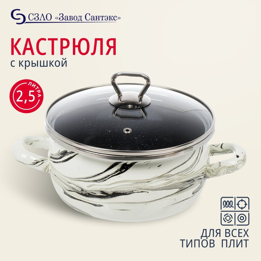 Кастрюля эмалированная Сантэкс 2.5 л — универсальное решение для индукции, газовых и электрических плит. Стильный дизайн, долговечность, удобство!