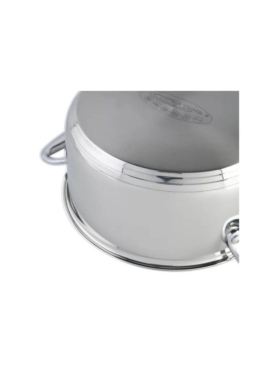 Кастрюля нержавеющая сталь 4.2 л Катунь Ника — это функциональное решение для ежедневной кухни. Благодаря универсальному капсульному дну она подходит для всех типов плит: индукционных, газовых, электрических, стеклокерамических и галогеновых. Стальная кастрюля с объемом 4,2 литра оптимальна для семьи 2-5 человек, а стеклянная крышка с паровыпуском позволяет контролировать процесс приготовления и сохранять вкус блюд.