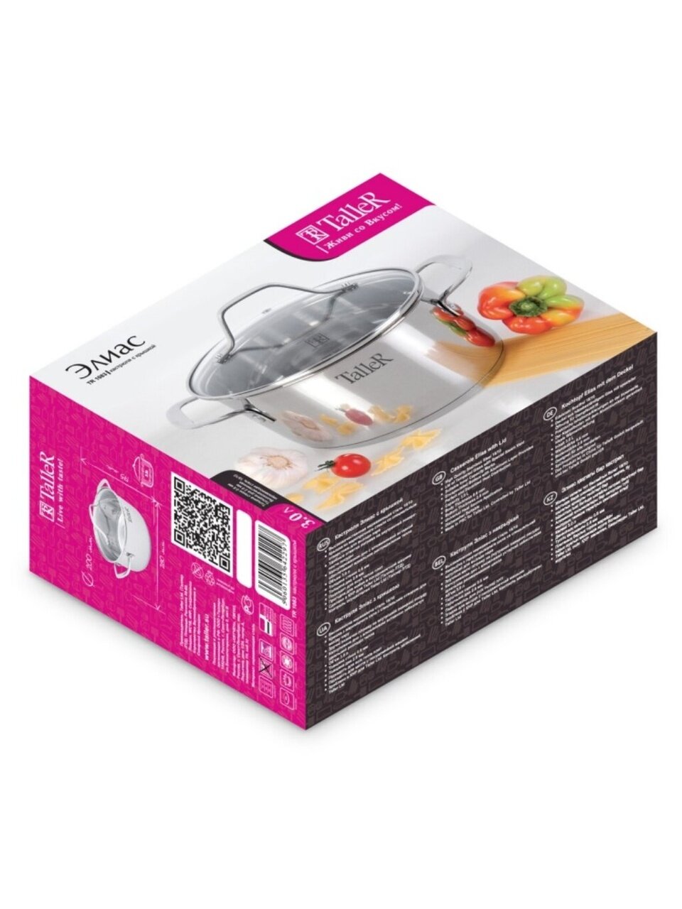 Вы можете приобрести «Кастрюля нержавеющая сталь, 3 л, крышка стекло, Taller, Элиас, 11083, индукция» и другие товары в нашем интернет-магазине в Ельце по низким ценам и с бесплатным самовывозом.