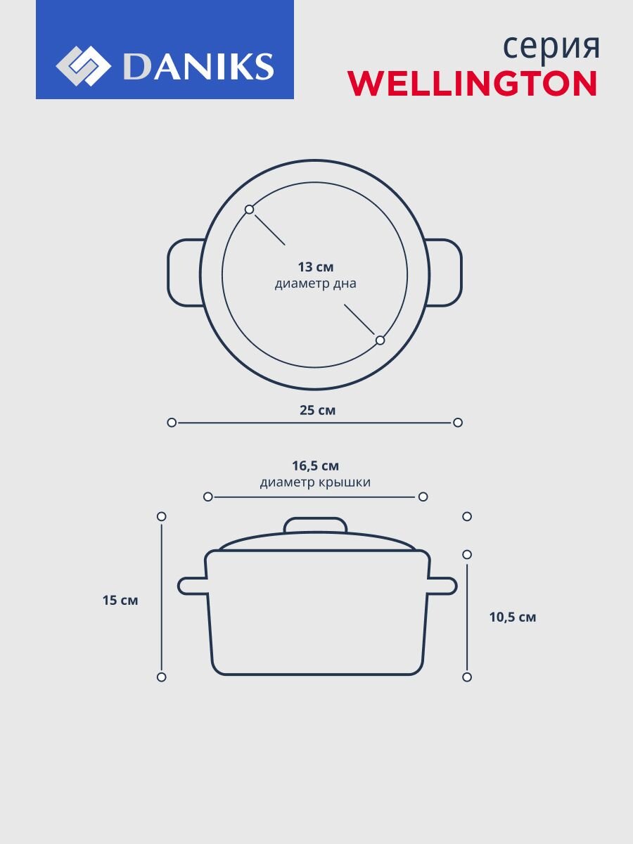 Какой диаметр и высота кастрюли Daniks Веллингтон?