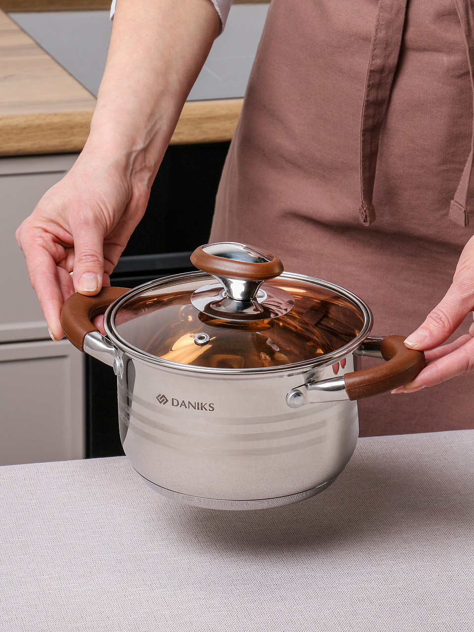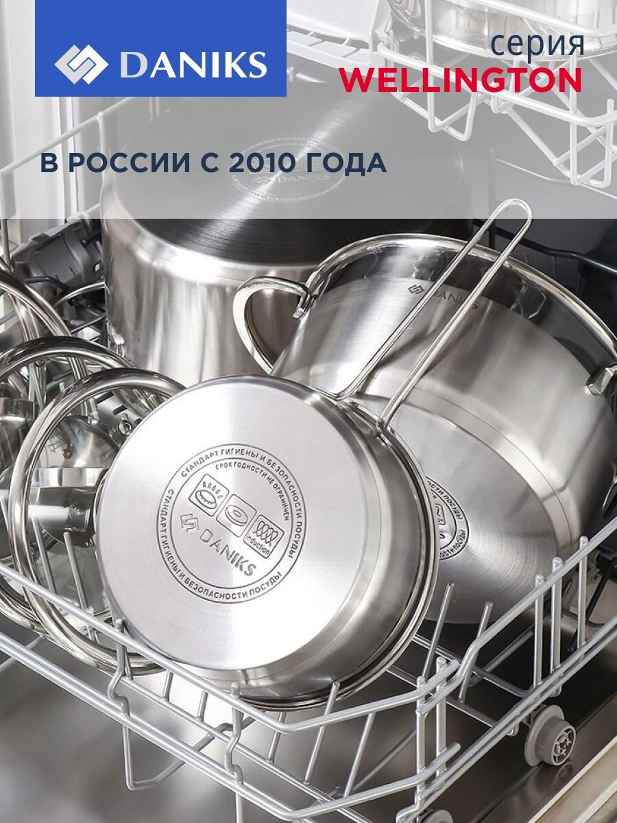 В отличие от аналогов без мерной шкалы или с тонким дном, кастрюля Daniks Веллингтон позволяет точно контролировать объем жидкости и предотвращает пригорание. Часто спрашивают: «Подходит ли эта кастрюля для индукционной плиты?» — да, благодаря специальному дну она быстро нагревается и экономит электроэнергию. Можно ли мыть в посудомоечной машине? Да, уход минимален — достаточно ополоснуть и поставить в машину.