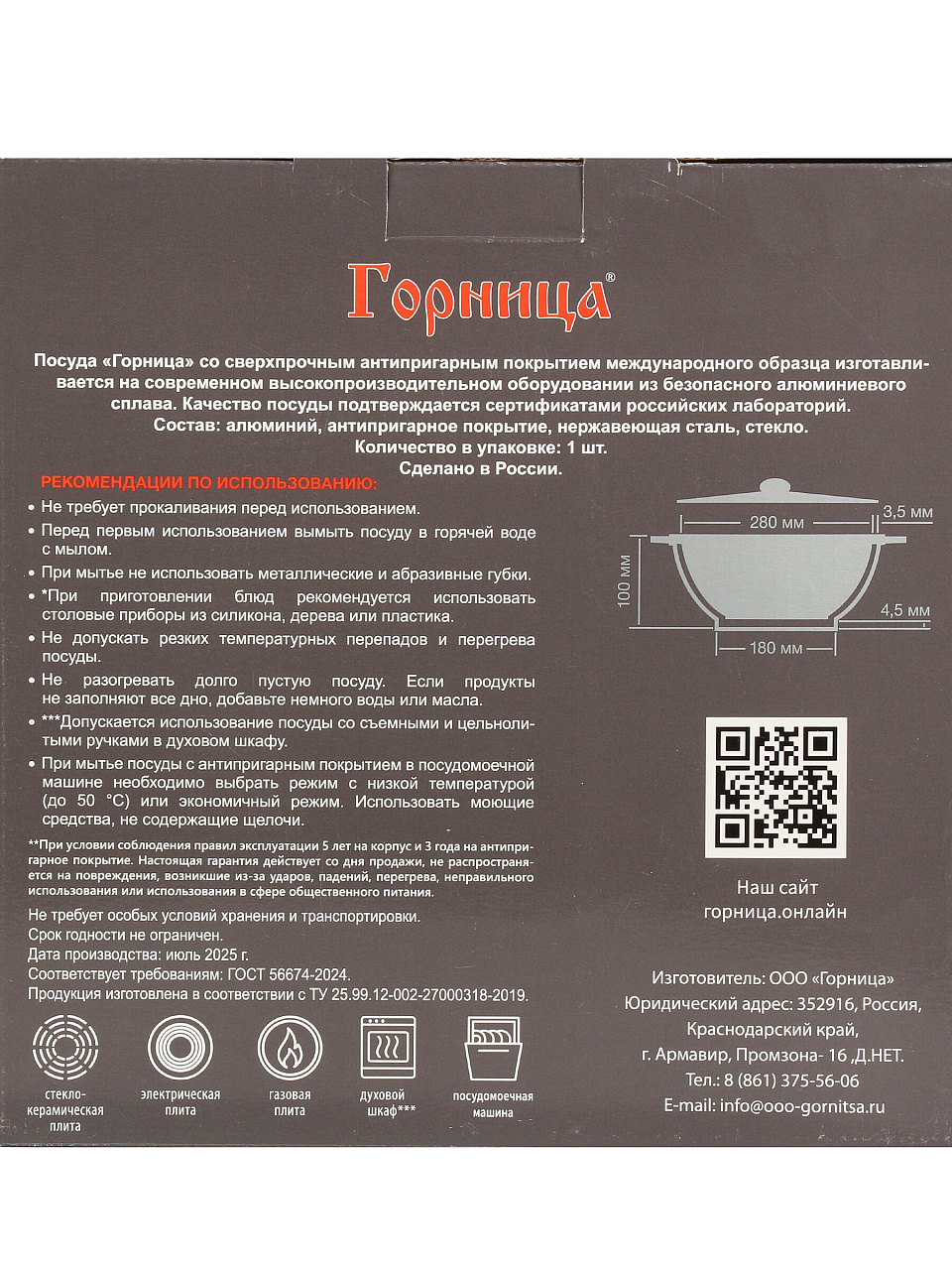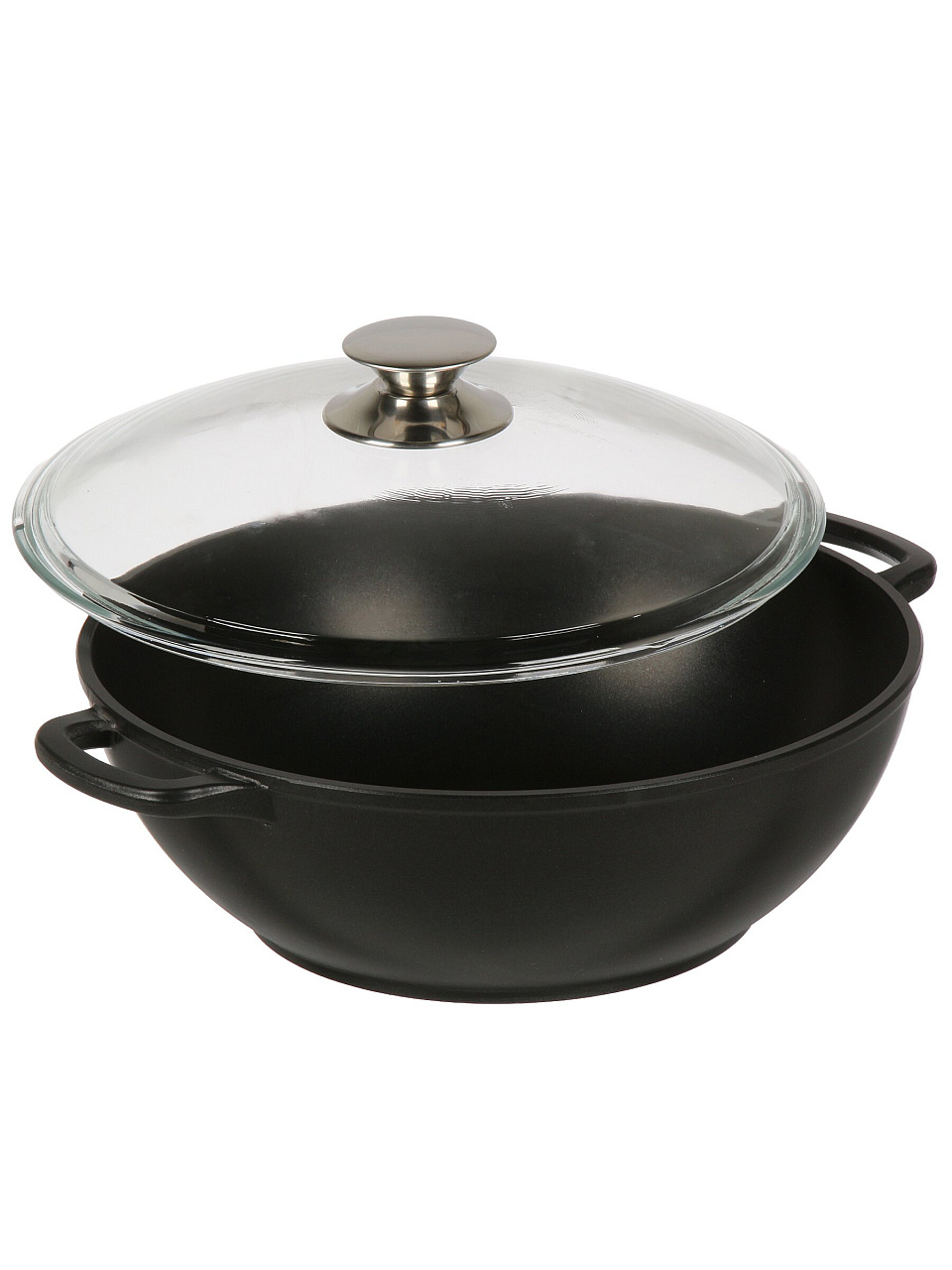 Литой пищевой алюминий не имеет канцерогенных веществ и посторонних запахов. Толстые стенки и дно обеспечивают равномерное приготовление блюда. Посуда не деформируется при нагревании. Антипригарное покрытие на водной основе без вредных химических соединений: экологично и безопасно.