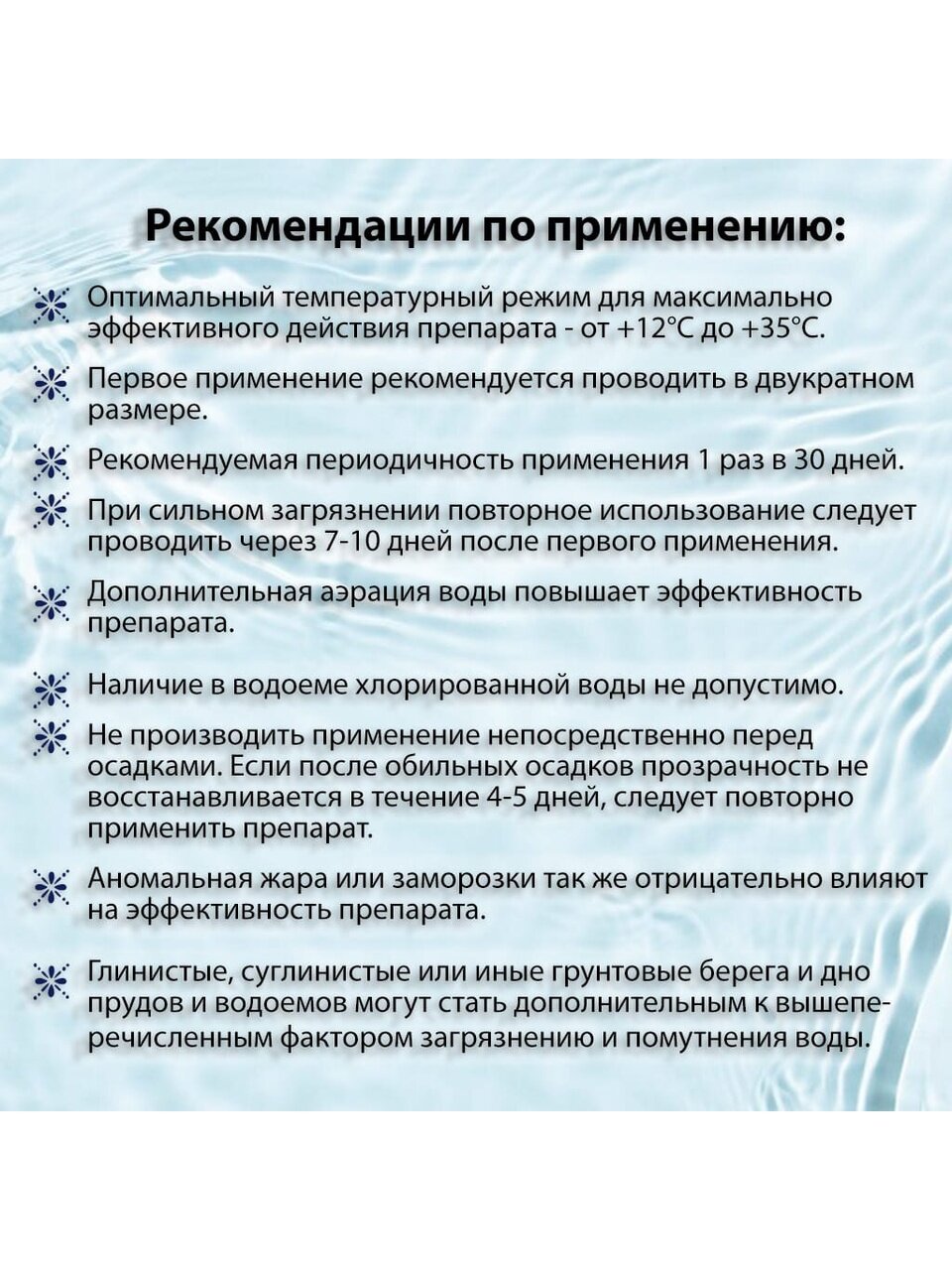 Покупая "Водяной", вы получаете не просто средство для очистки воды, а уверенность в том, что ваш водоем будет радовать вас и ваших близких своей чистотой и безопасностью. Это идеальное решение для тех, кто ценит комфорт и заботится о здоровье своих близких.