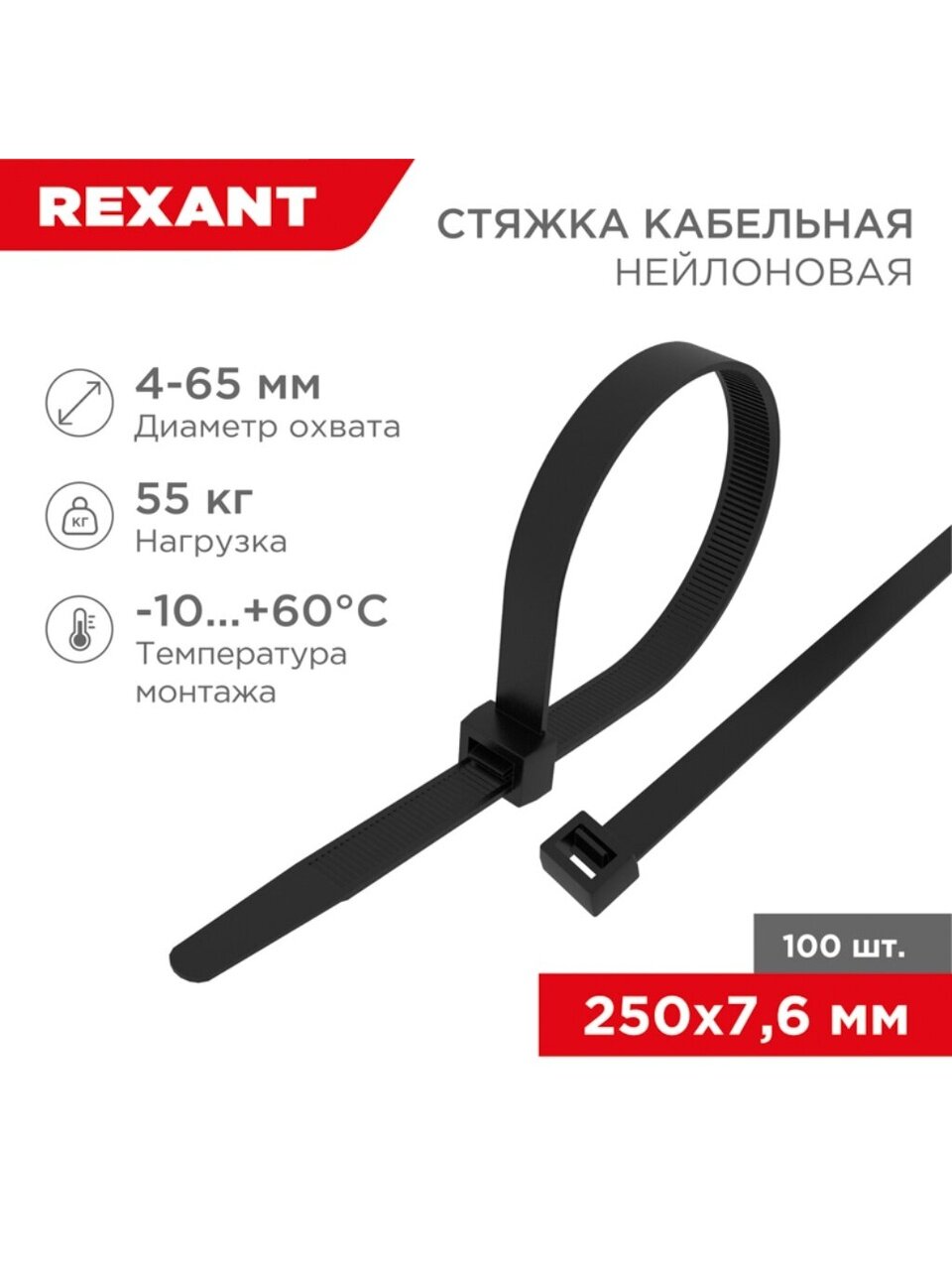 Вы можете приобрести «Хомут стяжной кабельный, 7.6х250 мм, нейлон, 100 шт, черный, Rexant, 07-0253» и другие товары в нашем интернет-магазине в Старом Осколе по низким ценам и с бесплатным самовывозом.