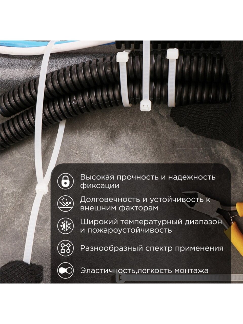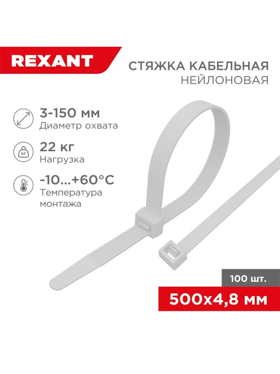 Ищете надежное решение для организации проводов и кабелей? Кабельные стяжки Rexant — идеальный выбор для упорядочивания любых проводов. Эти белые нейлоновые стяжки длиной 500 мм и шириной 4.8 мм обеспечат прочное крепление и долговечность.