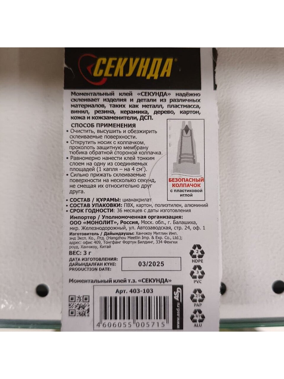 Вы можете приобрести «Клей Секунда, универсальный, однокомпонентный, 3 г, 403-103» и другие товары в нашем интернет-магазине в Коврове по низким ценам и с бесплатным самовывозом.