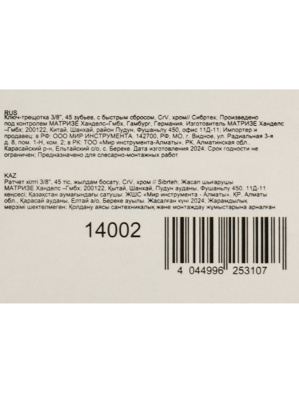 Вы можете приобрести «Ключ трещотка, Сибртех, 3/8 '', CrV сталь, с переключателем, 14002» и другие товары в нашем интернет-магазине в Ельце по низким ценам и с бесплатным самовывозом.