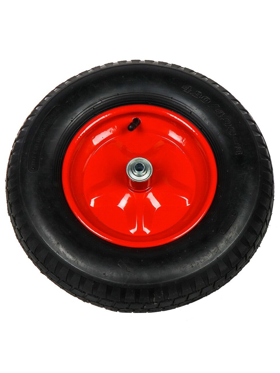 Колесо для тачки резина PR, без колпачка на ниппеле, 4.00-8, втулка D12/D16 мм от бренда Мастер Инструмент — надежное и долговечное решение для садовых и строительных работ. Прочный материал шины обеспечивает отличную износостойкость и устойчивость к повреждениям, что особенно важно при интенсивной эксплуатации на даче или стройплощадке. Благодаря универсальному диаметру втулки 12/16 мм и длине оси 90 мм, колесо подходит для большинства моделей тачек, облегчая замену и обслуживание техники без лишних хлопот.
