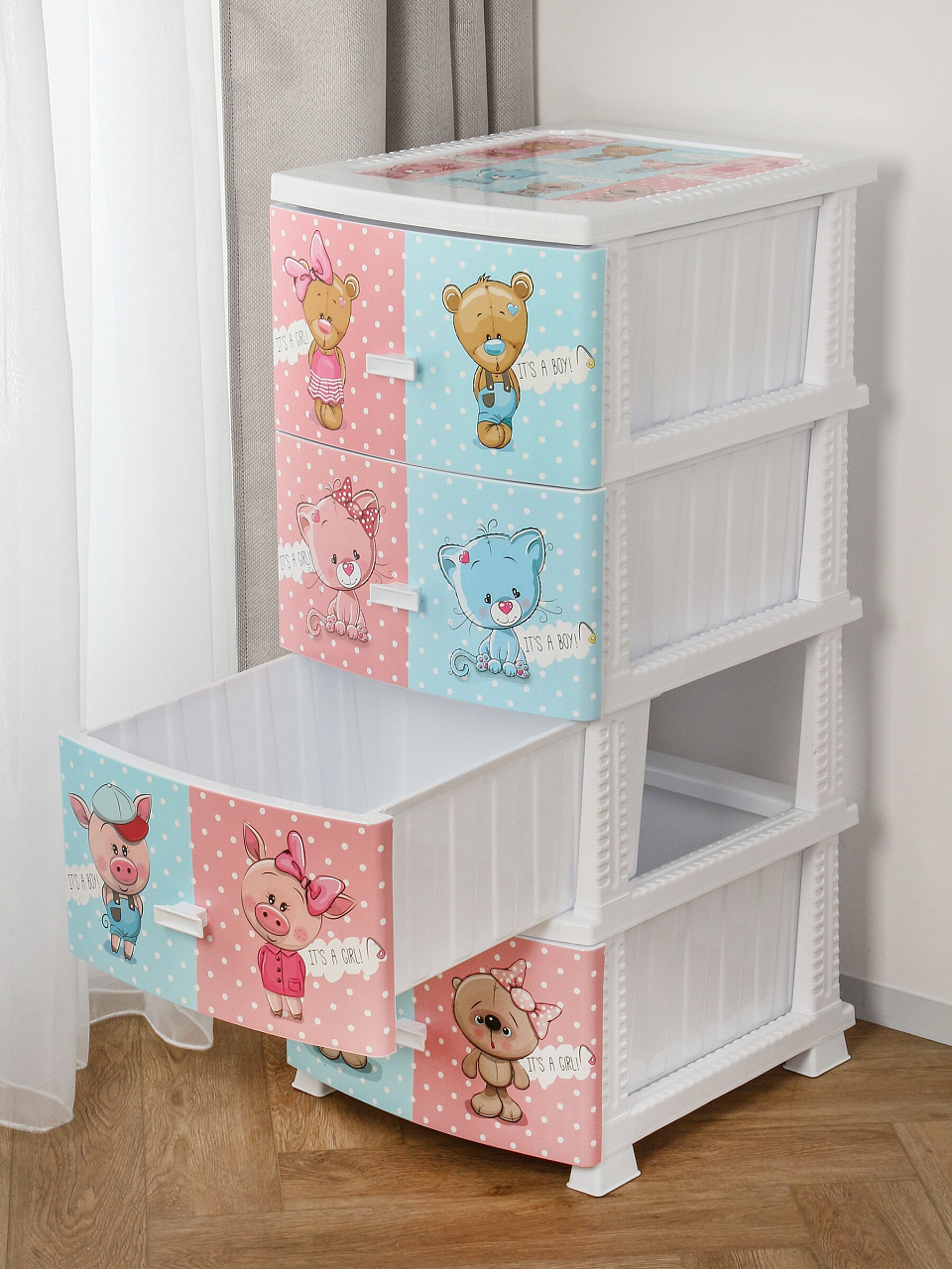 В ящики вы можете убрать разбросанные по квартире детские игрушки, сложить туда одежду или белье. Убрав вещи в комод, вы сразу заметите, насколько просторнее стала ваша квартира.