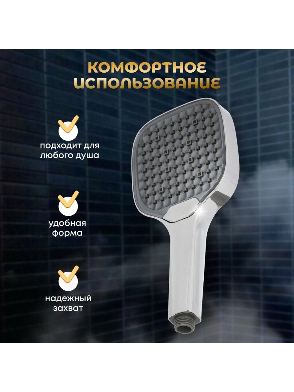 Лейка для душа выдаёт узконаправленный напор из отверстий, благодаря чему не происходит излишнего разбрызгивания, предотвращая распространение капель воды на пол и окружающие предметы, что поможет сохранить ванную комнату сухой и чистой.