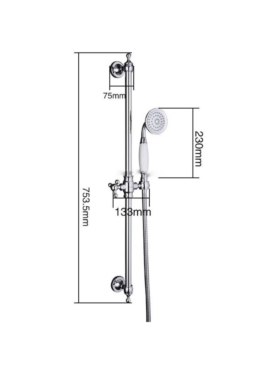 Современный душевой гарнитур с однопозиционной душевой лейкой, шлангом, вращающимся на 360 градусов и удлиняющимся на 35 процентов и металлической стойкой. Лейка выполнена в цвете хром, высотой 75,35 см. Для установки в ваннах, душевых углах и кабинах.
