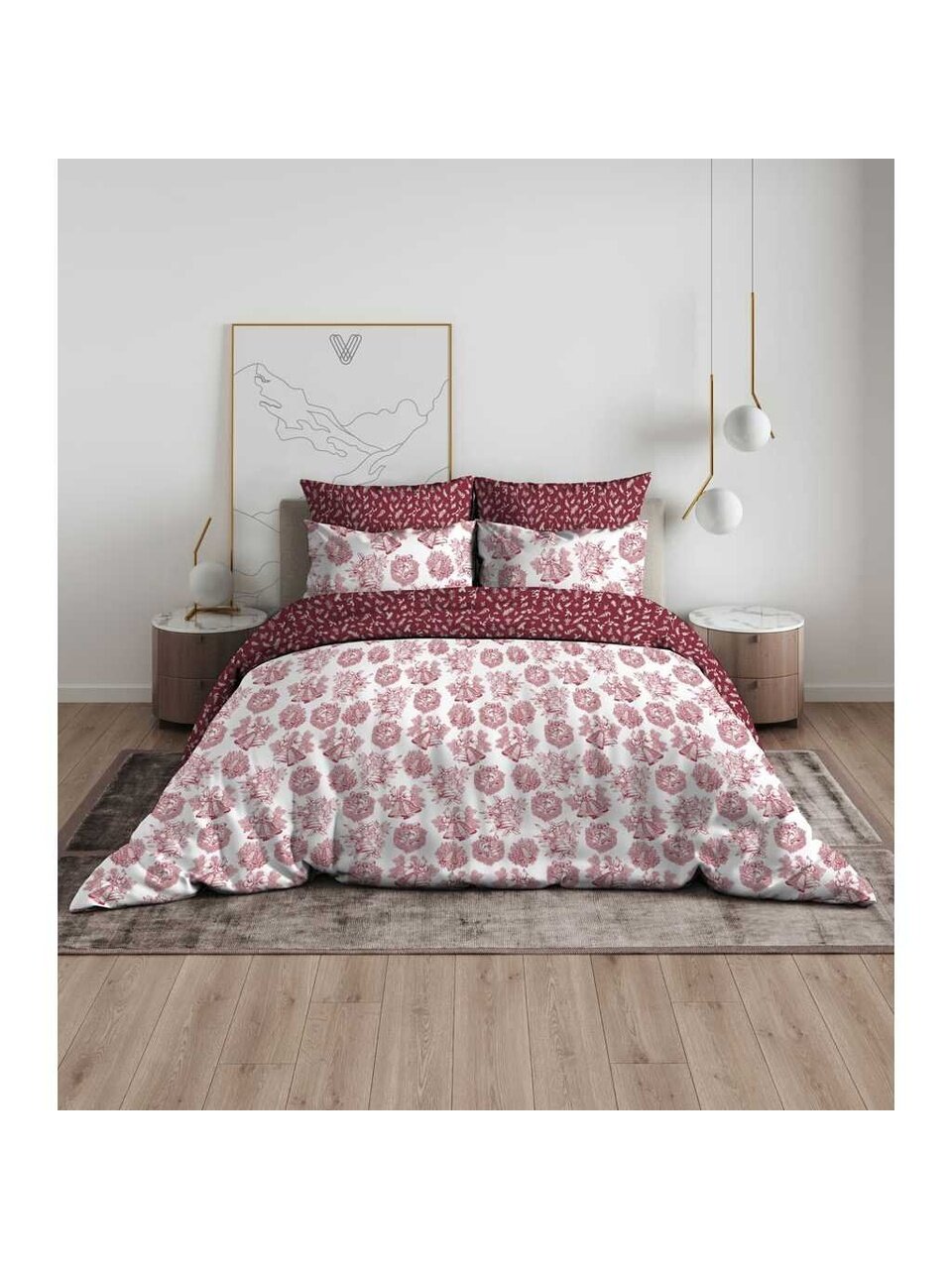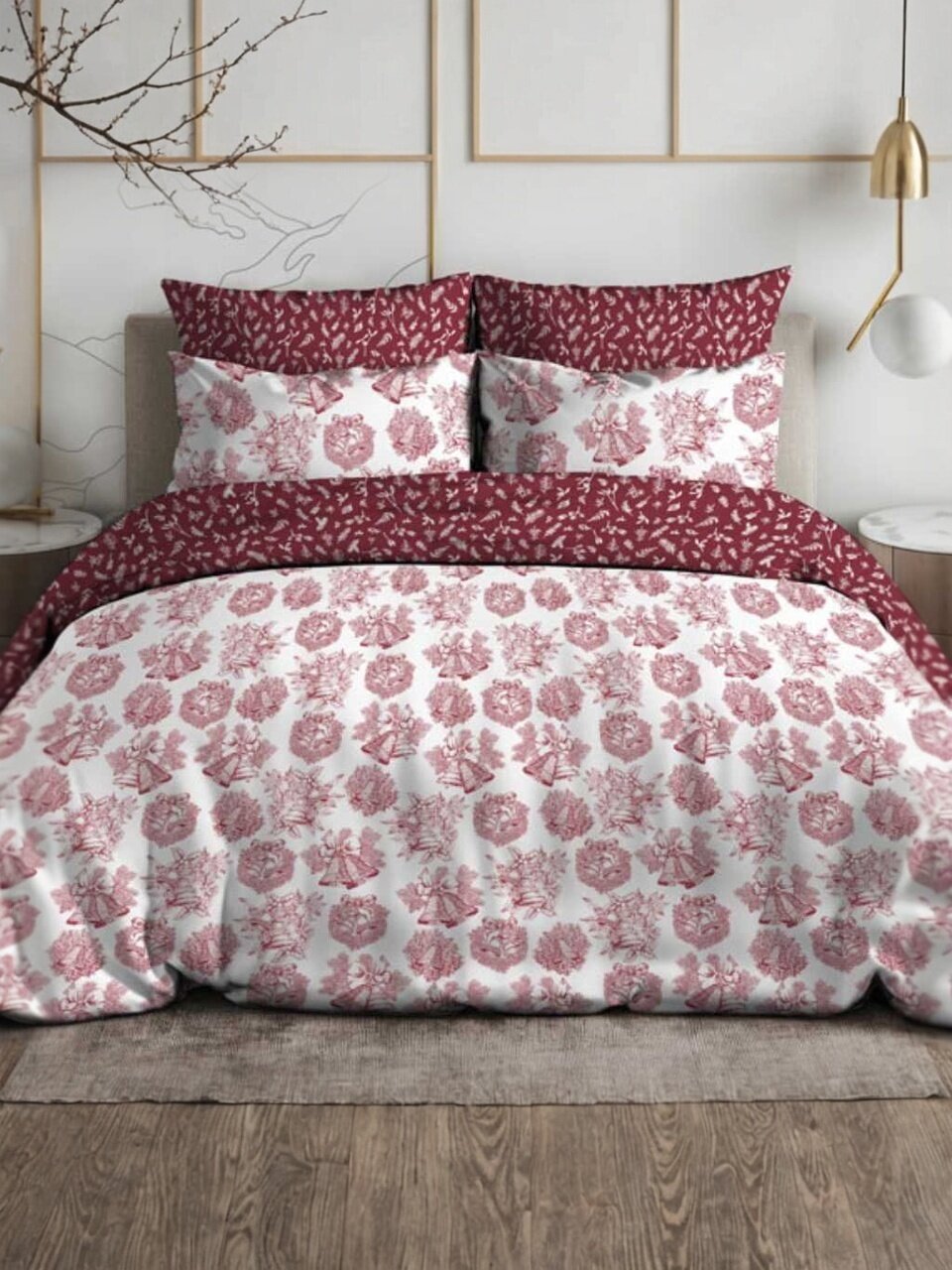 - Новогодний дизайн «Колокольчики» — создаёт атмосферу праздника и уюта в спальне