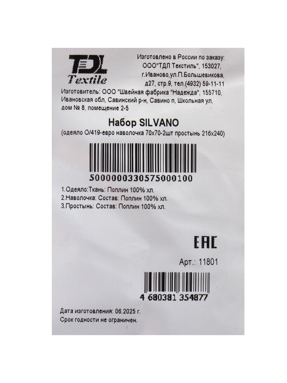 Вы можете приобрести «Набор евро, простыня 216х240 см, 2 наволочки 70х70 см, Silvano, поплин, с одеялом 200х215 см, 11801» и другие товары в нашем интернет-магазине в Ставрополе по низким ценам и с бесплатным самовывозом.