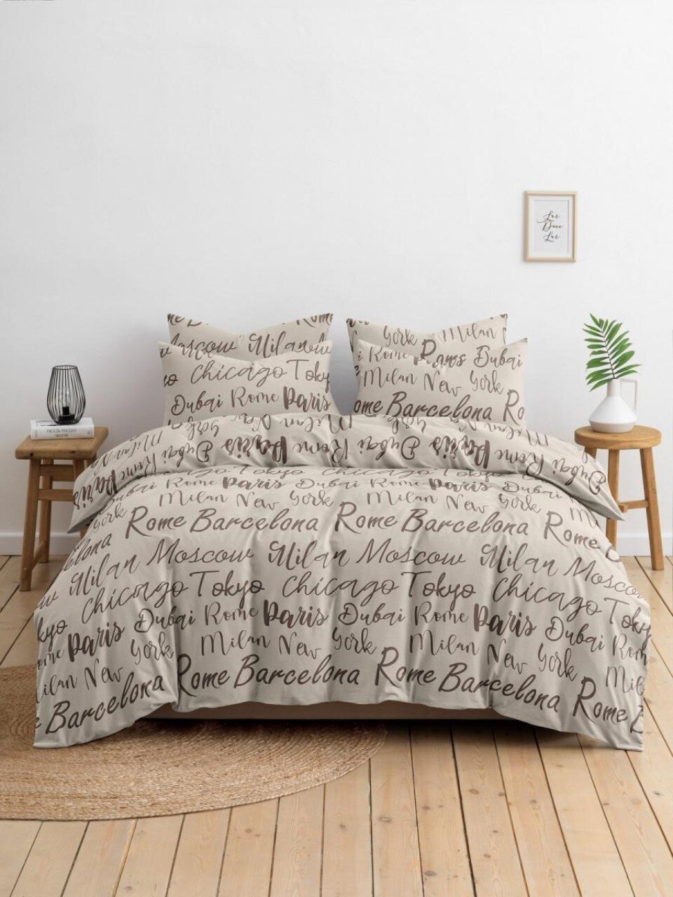 - Уникальный дизайн «Сити» с модными надписями — современный акцент в любой спальне