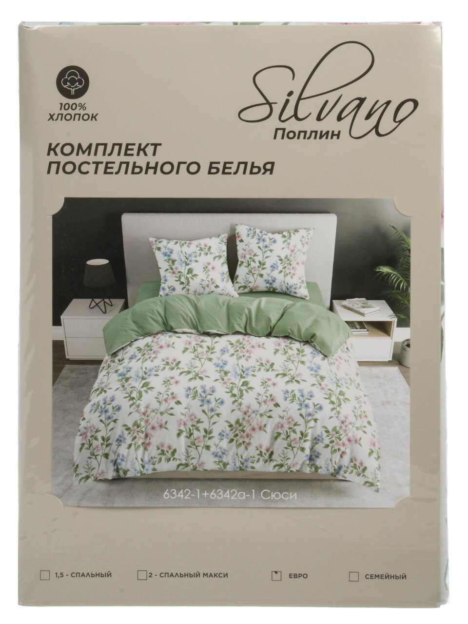 Постельное белье евро Silvano «Сюси»: 100% хлопок-поплин, 4 предмета, размер 215х240 см, подарочная упаковка. Для комфортного сна и стильного интерьера.