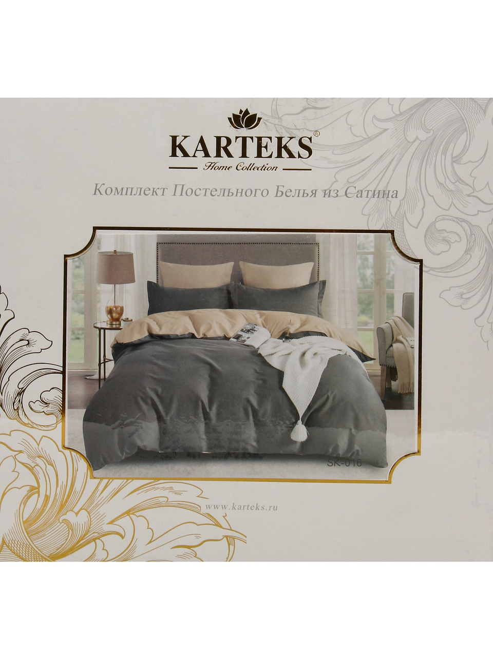 Премиальное постельное белье евро Karteks SK016: сатин, 6 предметов, 4 наволочки, стильный серый — для комфортного сна и стильного интерьера.
